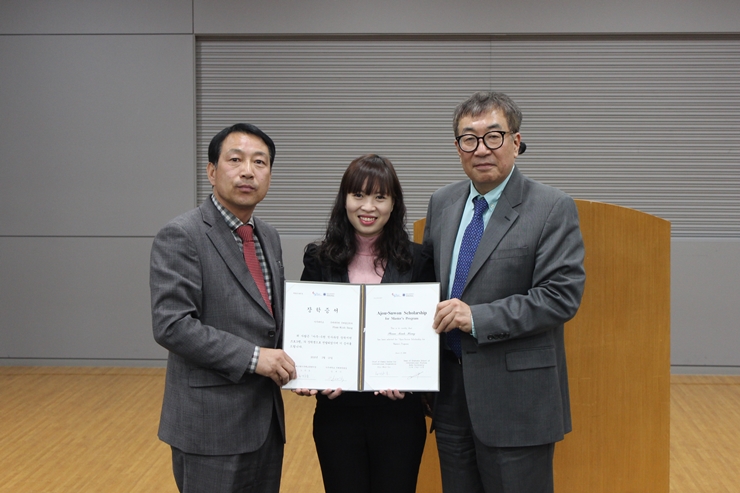 기부자 감사패 전달식이 15일 오전 우리 학교 총장실에서 진행됐다. 장학금·발전기금을 쾌척한 최태영 전자공학과 교수, 최기주 교통시스템공학과 교수, 김재준 ㈜미래컴 대표이사가 감사패를 받았다. 이날 감사패 전달식에는 김동연 총장과 이건모 공학대학원장, 이중섭 기획처장, 이채우 전자공학과 학과장이 함께 자리했다. 김동연 총장은 직접 감사패와 꽃다발을 전달하며 감사의 뜻을 표했다. 이날 감사패를 받은 최태영 전자공학과 교수는 전자공학과 발전기금으로 2000만원을 기부했다. 최기주 교통시스템공학과 교수는 ‘최기주장학금’으로 2000만원을 기부, 학생들의 장학금으로 사용되고 있다. 공학대학원 동문인 김재준 ㈜미래컴 대표이사는 1000만원을 쾌척했다. *사진 위 - 최태영 전자공학과 교수에게 감사패를 전달하고 있는 김동연 총장 *사진 아래 - 왼쪽부터 이채우 전자공학과 학과장, 이건모 공학대학원장, 최태영 전자공학과 교수, 김동연 총장, 최기주 교통시스템공학과 교수, 김재준 ㈜미래컴 대표, 이중섭 기획처장