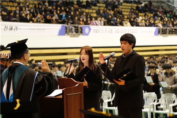 2015학년도 학위수여식이 22일 오후 2시 우리 학교 체육관에서 개최됐다. 이번 학위수여식에서는 학사 1630명, 석사 234명, 박사 87명이 학위를 받았다. 학사 1630명 중 복수학위자는 215명, 부전공 이수자 93명이다. 지난 2015학년 8월자로 학위를 받은 학사는 810명, 석사 155명, 박사 58명으로 2015학년도 학위 취득 총인원은 학사 2440명, 석사 389명, 박사 160명이다. 학위수여식은 국민의례로 시작해 임석철 교무처장의 학위수여 보고, 김동연 총장의 학위수여 식사, 졸업생 대표 답사, 시상, 학위수여 순으로 이어졌다. 이날 행사에는 학교법인 대우학원 추호석 이사장과 김동연 총장, 최경희 산학부총장, 각 대학 학장들과 이범재 총동문회장이 함께 자리했다. 김동연 총장은 식사를 통해 “총장으로서 지난 1년간 가장 즐겁고 행복했던 순간이 바로 여러분과 마주보며 이야기하고 서로 고민과 생각을 나누던 시간들”이라며 “여러분을 아주의 품에서 떠내 보내며 하고 싶은 마지막 이야기는 바로 실패와 좌절에 대한 것”이라고 말했다. 김 총장은 “실패와 시행착오가 ‘상처’로만 남지는 않을 것이기에 도전을 두려워할 필요가 없다”며 “학교는 여러분이 각자의 자리에서 우뚝 설 때까지 학교는 ‘공동책임’의 정신으로 함께 할 생각”이라고 덧붙였다. 졸업생 답사는 전체 수석 졸업자인 정보통신대학 전자공학과 이용복 학생이 낭독했다. 수상자 명단은 다음과 같다. ◆이사장상 - 이용복(정보통신대학) ◆총장상 – 성적우수상 박현지(공과대학) 양동혁(법과대학) 서기석(자연과학대학) 김아람(의과대학) 최상우(경영대학) 신명진(간호대학) 김형태(인문대학) 전상원(약학대학) 정태경(사회과학대학) ◆총장상 – 공로상 신의섭(공과대학) 허무관(경영대학) ◆아주인상 – 김민수·이상민(공과대학) 성인영(자연과학대학) 오재용(약학대학) 고승연(의과대학) ◆총동문회장상 – 황미정(경영대학) ◆주한프랑스대사상 – 조수연(인문대학) ◆경기도지사상 – 이도결(경영대학) ◆경기도의회의장상 – 김연수(사회과학대학) ◆농촌진흥청장상 – 박창진(공과대학)