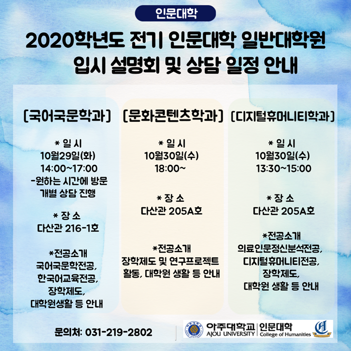 | 9005 | 행사 | 인문대학교학팀 | 2019-10-22 | ||
