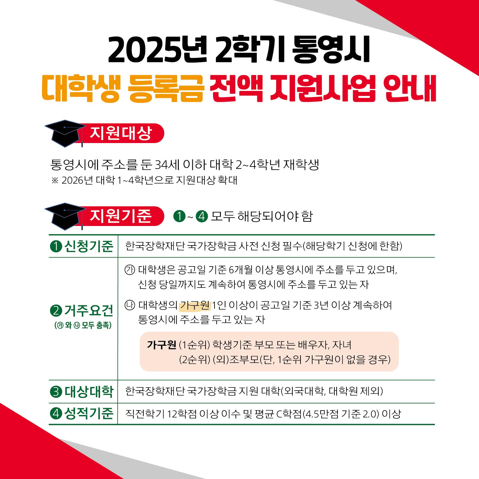 [교외장학] 2025년 2학기 통영시 대학생 등록금 전액 지원사업