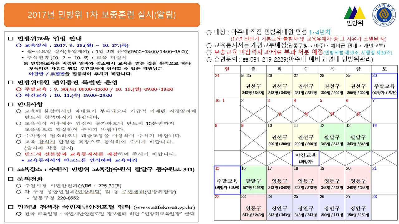| 4499 | 기타 | 예비군연대 민방위관리 | 2017-09-08 |