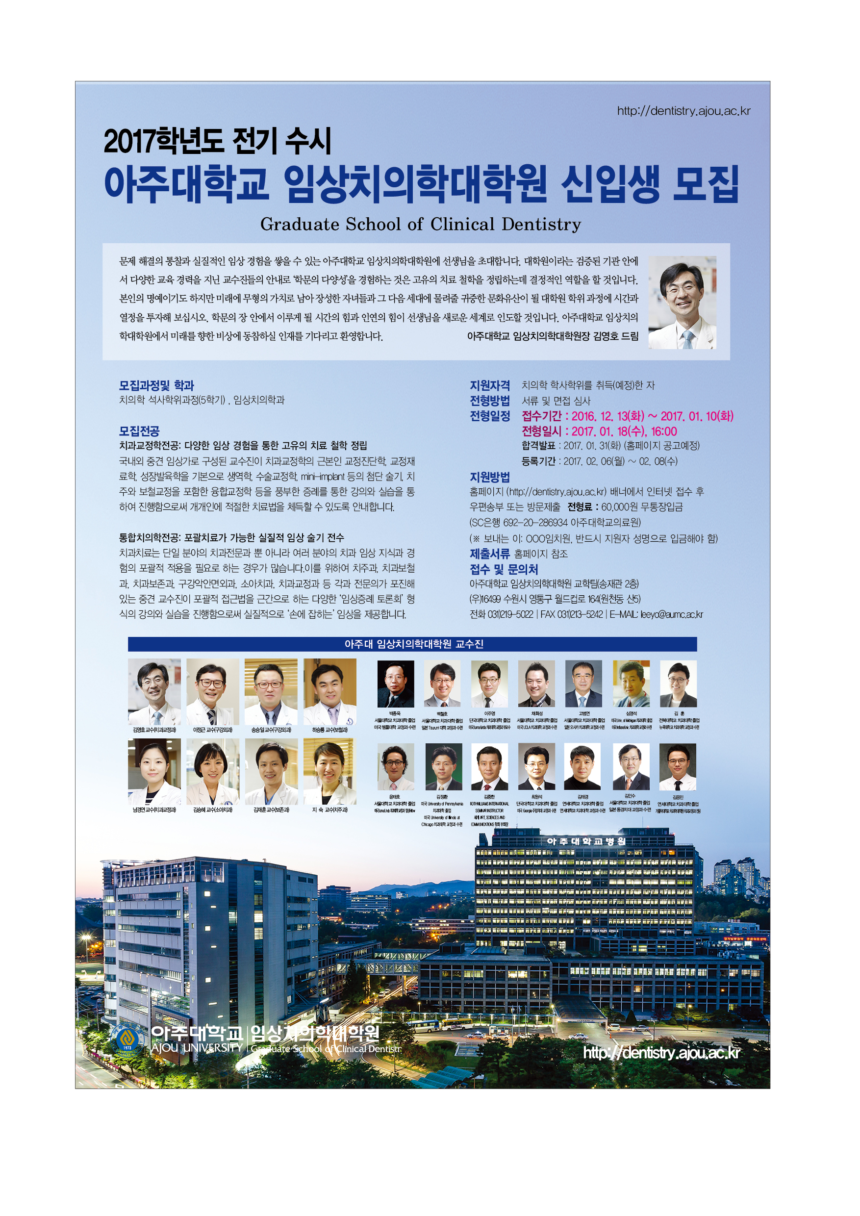 2017학년도 전기 수시 아주대학교 임상치의학대학원 신입생 모집