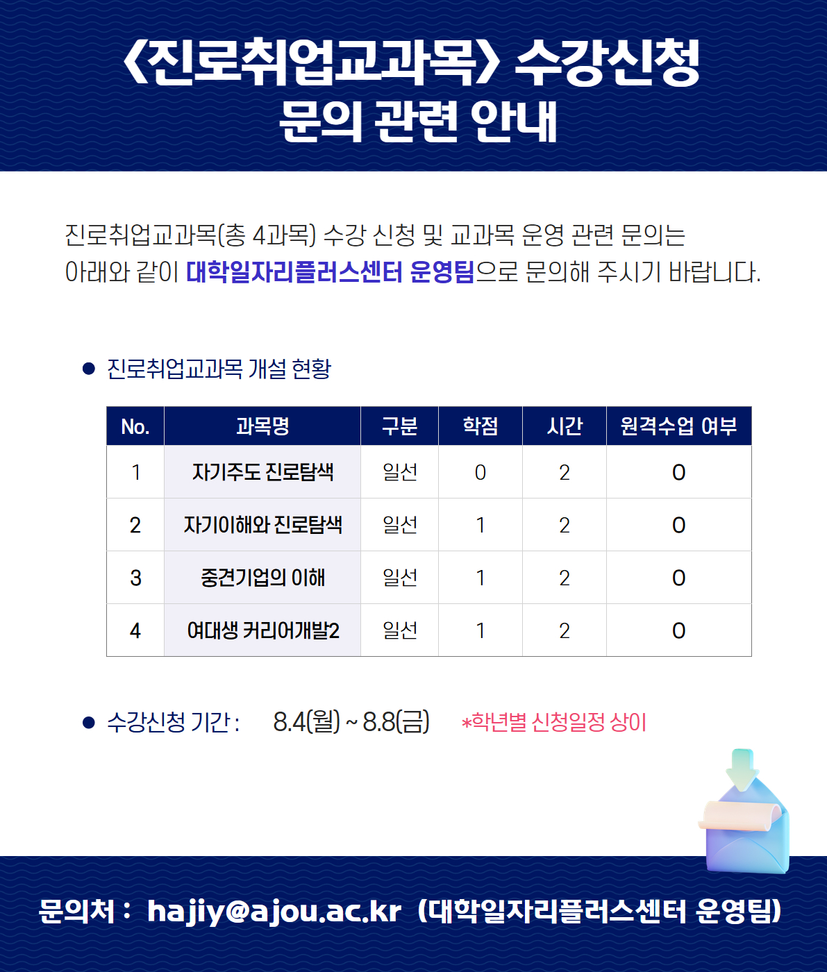 [일자리+센터] 진로취업교과목 수강신청 문의 관련 안내