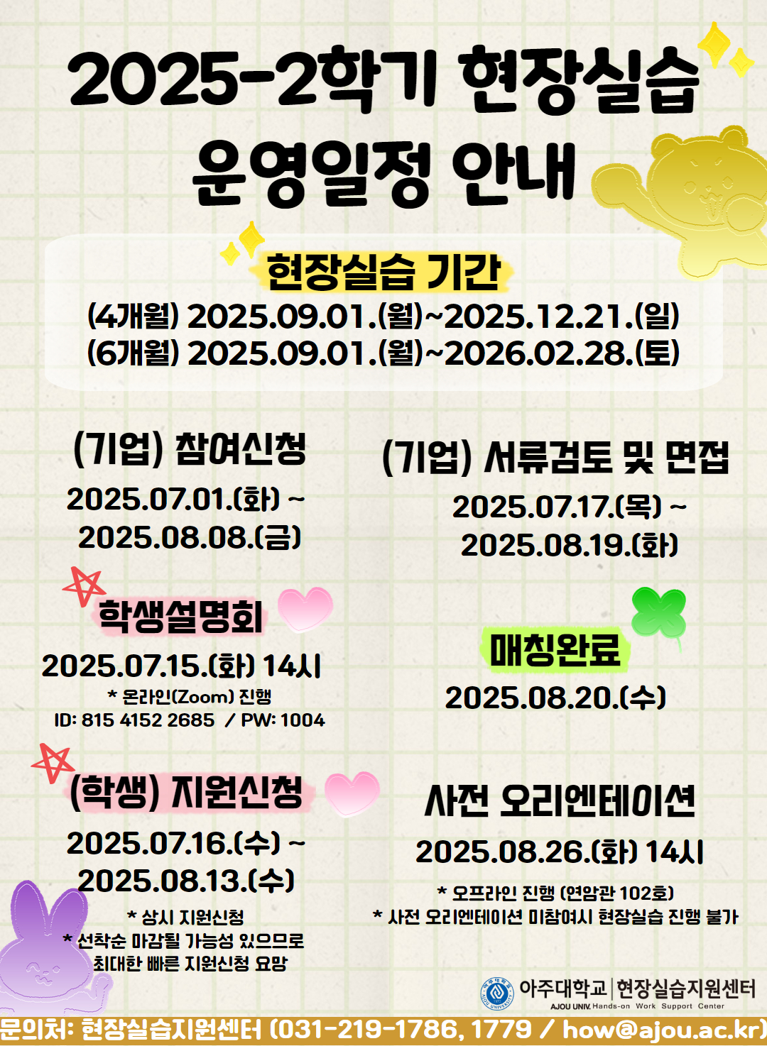 [★재공지][RISE] 2025-2학기 현장실습 운영일정 안내(★학생 지원신청 07.16.(수)~)