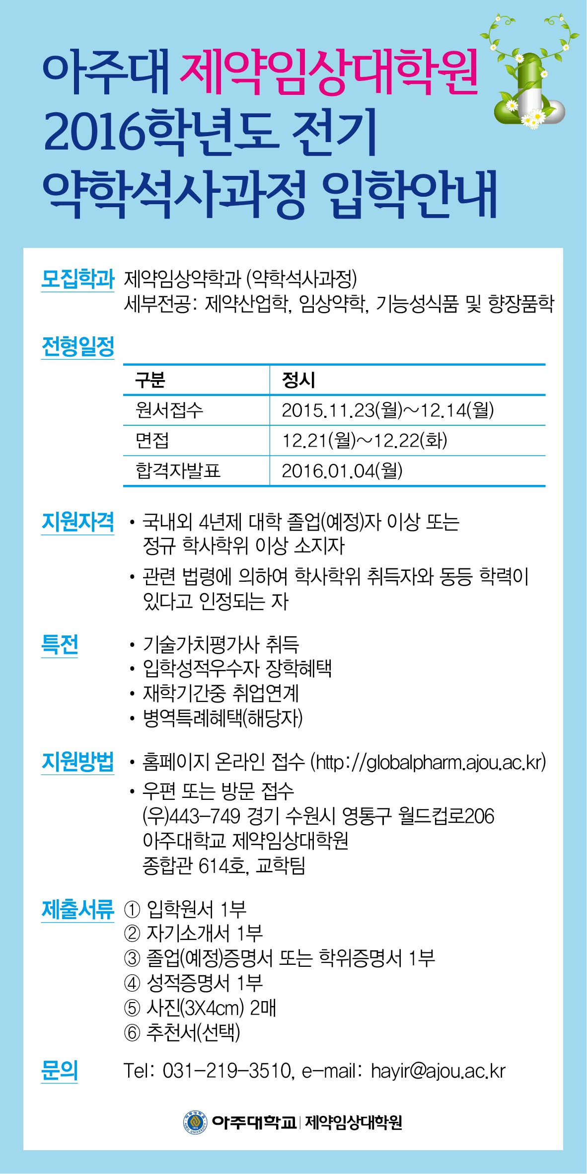 | 1080 | 입학 | 글로벌제약임상대학원 | 2015-11-03 | ||