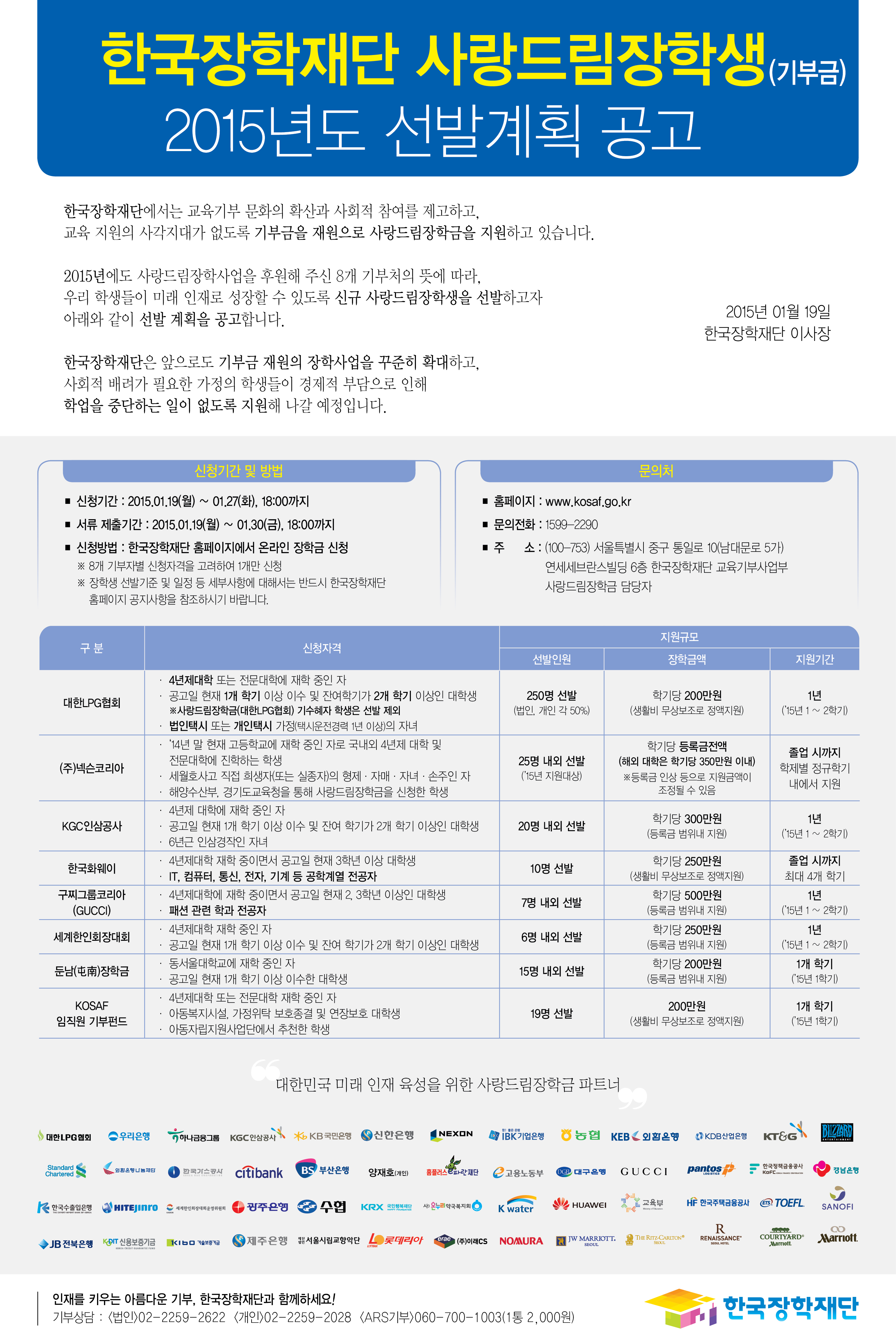 2015년 한국장학재단 사랑드림장학생 선발계획 공고