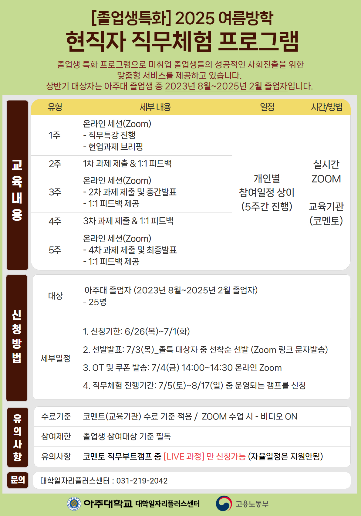 | 24632 | 취업 | 대학일자리플러스센터 | 2025-06-26 | ||