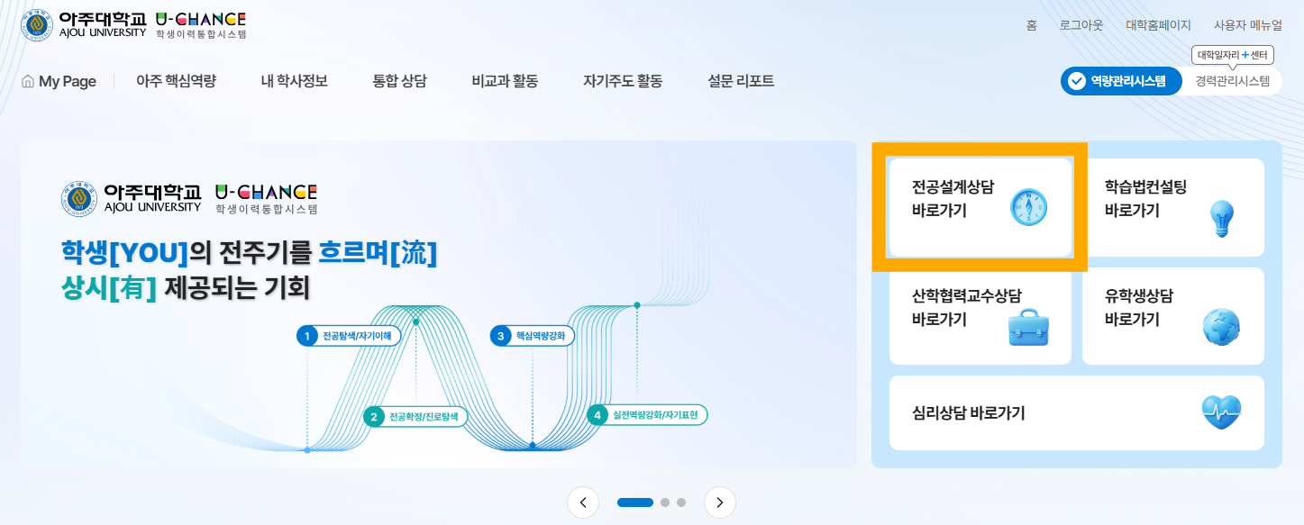 โ–ผ U-Chance ํ•™์ƒ์ด๋ ฅํ†ตํ•ฉ์‹œ์Šคํ…œ์—์„œ ์ „๊ณต์„ค๊ณ„ ์ƒ๋‹ด ์‹ ์ฒญํ•˜๊ธฐ