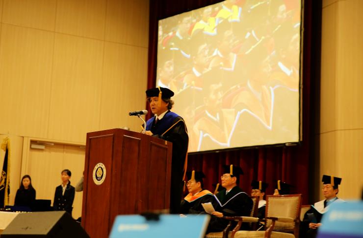 박형주 총장은 지난 2월 16일 종합관 대강당에서 열린 경영대학원 2018 학위수여식에 참석하였다