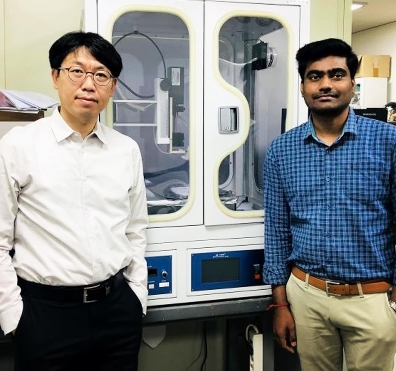 아주대학교 연구진이 ‘꿈의 신소재’ 그래핀에서 나타나는 새로운 광학 현상을 규명해냈다. 이에 2차원 물질 기반의 초고속 광신호 처리나 양자 통신, 양자 센싱 등 양자기술 분야에 활용할 수 있을 전망이다.염동일 교수(물리학과·대학원 에너지시스템학과, 사진 왼쪽) 연구팀은 단층 그래핀 두 장을 뒤틀어 포개었을 때 큰 폭 향상된 비선형 광신호가 발생함을 규명했다고 밝혔다. 관련 내용은 ‘두 겹 그래핀에서 뒤틀림 각도 조절을 통한 향상된 삼차조화파 발생(Enhanced third-harmonic generation by manipulating the twist angle of bilayer graphene)’이라는 제목의 논문으로 광학 분야 국제 학술지 <빛: 과학과 응용(Light: Science & Applications) IF=13.714, IF(%)=2.577> 1월21일자 온라인판에 게재됐다.이번 연구에는 아주대 대학원의 하성주(박사과정, 사진 가운데), 박남훈(박사졸업, 사진 오른쪽) 씨가 제1저자로 참여했고 아주대 이재현 신소재공학과 교수, 유영동 화학과 교수, 박지용 물리학과 교수, 안광준 대학원 에너지시스템학과 교수와 서울시립대학교 정재일 교수(물리학과)도 함께 했다. 단일 탄소 원자층으로 이뤄진 대표적 2차원 물질인 그래핀(graphene)은 높은 전도성과 투명성 뿐 아니라 유연성까지 갖추고 있어 차세대 전기소자 및 광학소자의 기반이 되는 미래 소재로 주목받아 왔다. 단층 그래핀 위에 또 다른 단층 그래핀을 비스듬하게 겹쳐 쌓으면 무아레 무늬(Moire pattern)에 의한 초격자(superlattice) 구조가 나타나게 되는데, 이때 뒤틀림 각도에 따라 저항이 아예 사라지는 초전도체나 전기가 전혀 통하지 않는 절연체 등 기존 단층 그래핀에서 볼 수 없었던 독특한 물리현상이 관측되면서 최근 큰 주목을 받고 있다. 무아레 무늬란, 촘촘한 주기를 가지는 그물이나 옷감 두 장을 비스듬히 겹칠 때 본래 주기보다 매우 큰 주기를 가지고 형성되는 초격자 무늬를 말한다.염동일 교수 연구팀은 강한 세기의 빛이 뒤틀린 두 겹 그래핀에 입사할 때 발생하는 비선형 광학 현상에 주목했다. 특히 두 겹 그래핀의 무아레 초격자 구조에 의하여 전자 상태밀도의 반 호프 특이점(van Hove singularity, 고체 물리 분야에서 전자의 상태밀도 함수가 봉우리 모양의 불연속성을 가지는 지점)이 형성되는데, 특이점 사이의 에너지 간극이 입사하는 빛 에너지의 세 배가 될 때 크게 향상된 삼차조화파가 발생한다는 사실을 밝혀냈다. 연구팀은 나아가 전기적인 제어를 통해 단층 그래핀 대비 최대 60배까지 향상된 비선형 광 파장 변환 신호를 얻을 수 있었다.염동일 교수는 “이번 연구를 통해 그래핀의 적층 각도가 2차원 물질의 비선형 광 특성을 제어하고 향상시키는 새로운 변수가 될 수 있음을 최초로 밝혀냈다”며 “앞으로 2차원 물질의 비선형 광특성을 활용한 초고속 광신호 처리나 양자기술 분야의 광원으로 응용하는데 기여할 수 있을 것”이라고 설명했다.이번 연구는 한국연구재단 중견연구자지원사업과 한국에너지기술평가원의 에너지인력양성사업의 지원으로 수행됐다.(왼쪽)뒤틀린 두 겹 그래핀의 광학현미경 사진. 각각의 색깔은 서로 다른 회전 각도로 적층된 구역을 나타낸다. (오른쪽)두 겹 그래핀에서 측정된 삼차 조화파 발생 이미지