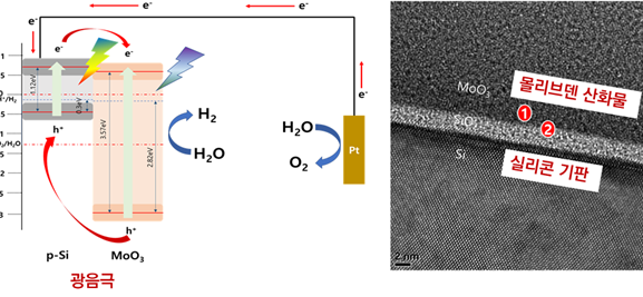 우리 학교 서형탁 교수 연구팀이 태양광을 이용한 친환경 수소 생산에 활용될 수 있는 기반 기술을 개발했다. 수소는 대표적 청정 연료로 차세대 에너지원으로 주목받고 있으며, 최근 전기나 태양광을 이용해 수소를 생산하는 기술 연구가 활발히 진행되고 있다. 서형탁(신소재공학과·대학원 에너지시스템학과, 사진) 교수팀은 물 분해 수소 생산 효율과 내구성이 크게 향상된 실리콘 기반의 태양광전기화학 광음극을 개발하는데 성공했다고 밝혔다. 관련된 내용은 화공 촉매 분야의 저명 국제 학술지인 12월24일자 온라인 최신호에 소개됐다. 우리 학교 샨카라 칼라누르(Shankara S. Kalanur) 교수와 박사과정의 유일한 연구원이 함께 참여했다.수소는 수소 연료 전지에 적용되어, 연료 사용 후 물이 배출되는 대표적 청정 연료원이다. 이에 수소는 수소전기차 뿐 아니라 발전과 에너지 저장 등 산업 전반으로 활용 영역이 확장되고 있다. 수소의 생산은 화석연료의 구조를 변화시키는(개질) 방식으로 주로 이루어지고 있으나, 수소 생산 중량의 9배가 넘는 이산화탄소도 함께 배출되는 점이 한계로 지적되어 왔다. 이에 최근 전기나 태양광을 이용하는 광·전기 화학적 물 분해 기술 연구가 활발히 진행되고 있다. 서형탁 교수팀이 개발한 기술은 실리콘 기반의 태양광 전기화학 광음극으로, 반도체 소자나 태양전지에 널리 쓰이는 실리콘 및 산화물 적층 구조를 활용했다. 실리콘은 이미 태양전지에 널리 활용되는 소재이지만, 물 분해와 같은 전해질 수용액 환경에서는 효율이 떨어지고 쉽게 부식되어 사용이 어려웠다.서 교수는 “최근 전기나 태양광을 활용하는 광·전기 화학적 물 분해 기술 연구가 활발히 진행되고 있지만, 기존 화석 연료 개질 방식에 비해 생산 효율이 매우 낮다는 문제가 남아 있었다”며 “하지만 이번 연구에서 저가이며 범용 소재인 실리콘과 몰리브덴 산화물 박막 적층 구조를 광음극으로 적용해 표면에서 수소를 직접 생산해내는데 성공했다”고 말했다.이 기술의 핵심은 태양광이 반도체 광전극에 입사할 때 생성된 전하를 이용해 물을 분해하는 것이다. 기존 연구에서는 광전기 물 분해 전극 중 주로 양극에서 빛을 흡수하는 광양극에 대한 연구가 진행되어 왔으나 서 교수팀은 광음극에 주목했다.연구팀은 물 분해 같은 전해질 수용액 환경에서 쉽게 부식되고 효율이 떨어지는 실리콘의 단점을 극복하기 위해, 표면 전위를 제어해 태양광에 의해 형성된 광전하를 정확한 방향으로 분리하는데 성공했다. 또 산화물을 화학적으로 안정된 실리콘 보호막으로도 활용, 전해질 용액에 의한 부식을 획기적으로 개선했다. 서형탁 교수는 “실리콘 표면에 증착된 몰리브덴 산화물 박막의 정밀 조성 최적화 핵심 원천기술을 확보했다”며 “이에 실리콘 단일 소재 광음극 대비 광전류 효율은 6배, 12시간 연속 수소 생산 전극 내구성은 8배 개선할 수 있었다”고 전했다.연구팀은 앞으로 태양광 에너지만을 이용한 자가 전력 물분해 수소 생산의 실용화 기술 개발을 위해 연구를 이어갈 계획이다. 이번 연구는 한국연구재단의 이공학 기초 연구 지원사업(기본연구 및 중견연구자 지원사업)의 지원을 받아 진행됐다.