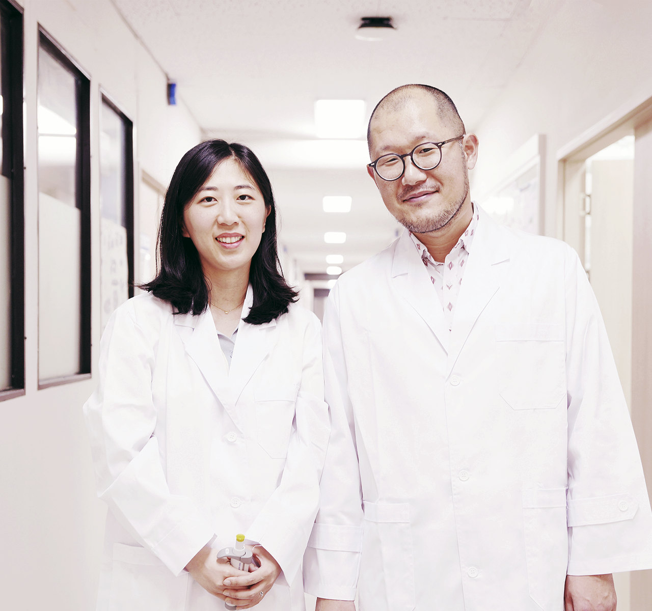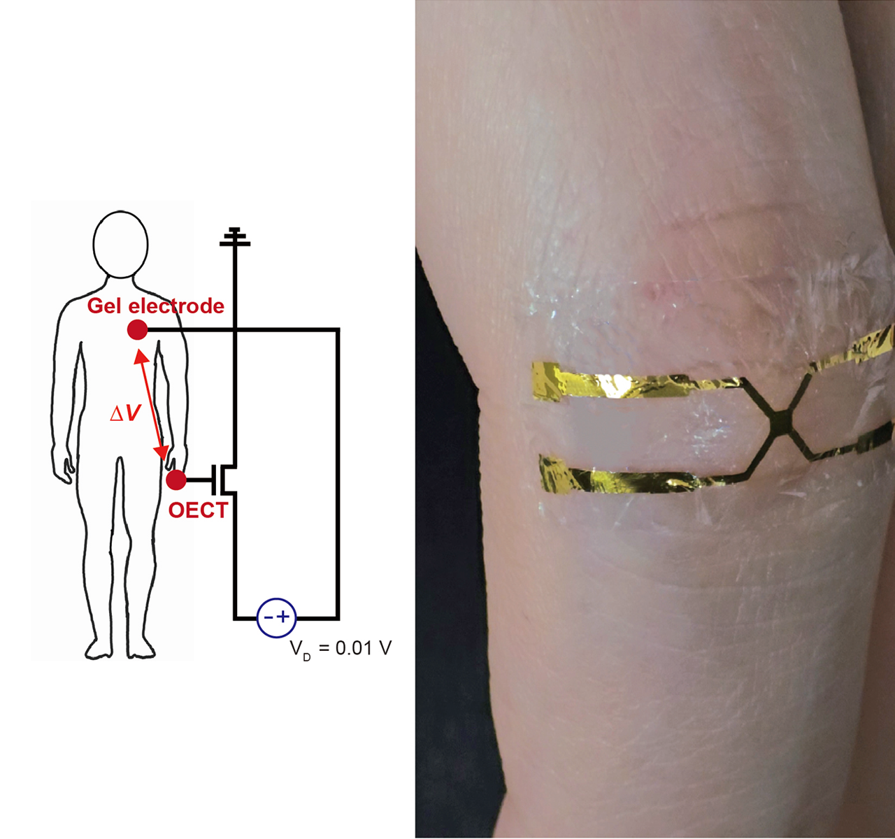 아주대 연구진이 낮은 전력으로도 정확하고 안정적으로 구동 가능한 정밀 전자 피부를 개발하는데 성공했다. 기존 반도체 기반 전자 피부의 약점을 보완한 것으로, 앞으로 생체신호 전반을 실시간으로 모니터링할 수 있는 첨단 바이오 기술에 널리 활용될 전망이다. 우리 학교 박성준 전자공학과·지능형반도체공학과 교수는 서울대·미국 퍼듀대 연구팀과 함께 새로운 유기물 전기화학 트랜지스터(OECT) 구조를 통해 기존 p-형 반도체 기반 전자 피부(e-skin)의 약점을 보완한 n-형 반도체 기반의 고정밀 전자피부를 개발했다고 밝혔다. 해당 연구는 ‘피부 밀착 심전도 모니터링을 위한 멸균 안정성을 가진 수직구조 n-형 유기물 전기화학 트랜지스터(Sterilizable vertical n-type organic electrochemical transistors for skin-conformal ECG monitoring)‘라는 제목으로 글로벌 저명 학술지 <재료과학 및 공학 보고(Materials Science and Engineering: R: Reports)>에 7월 게재됐다. 아주대 대학원 지능형반도체공학과 박사과정의 이인호 학생, 서울대 신소재공동연구소 김지환 박사와 미국 퍼듀대(Purdue University) 이원준 박사가 공동 제1저자로 참여했다. 박성준 아주대 전자공학과·지능형반도체공학과 교수와 강기훈 서울대 재료공학부 교수, 지엔궈 메이(Jianguo Mei) 미국 퍼듀대 화학과 교수는 교신저자로 참여했다. 전자 피부(e-skin)는 유연성과 기능성을 동시에 가져, 피부에의 밀착이 가능하면서도 생체신호를 정밀하게 측정할 수 있는 장치다. 이에 최근 외과적인 처치 없이 심박수와 체온 등 생체신호를 실시간 모니터링할 수 있는 비침습적 센서 플랫폼으로 주목받고 있다. 특히 유기 반도체 물질 기반의 유기물 전기화학 트랜지스터(OECT)는 피부 표면에서 일어나는 미세한 생체신호인 이온 농도 변화를 전기 신호로 변환·증폭할 수 있어, 단순 전극 기반의 전위차 측정 방식에 비해 더욱 정확하고 민감하게 이온 농도 변화를 측정할 수 있다. 이에 유기물 전기화학 트랜지스터(OECT)를 활용하면 생체리듬의 보다 정밀하고 안정적인 분석이 가능하다. 그동안 전자 피부(e-skin) 기술에는 유기 전기화학 트랜지스터(OECT) 채널 소재로 p-형 반도체가 활용되어 왔다. p-형 반도체가 전기적 성능과 환경 안정성 측면에서 n-형 반도체에 비해 우수한 덕분이다. 특히 p-형 반도체는 음전위 영역에서 생체신호를 효과적으로 증폭할 수 있어, 심박수나 뇌파 같은 음극성 생체신호의 감지에 적합하다.하지만 p-형 소재는 양전위 영역의 신호에는 민감도가 떨어져, 이온 농도 변화나 전해질 조성 등 양전위 기반 생체신호의 정밀 측정에는 한계가 존재한다. 또한 생체적합성 측면에서도 한계를 보이는데, 화학적 불안정성을 갖고 있어 자외선 조사나 고온 증기 등 의료 현장에서 일반적으로 사용하는 멸균 공정을 견디기 어렵다는 특성을 가지고 있다. 때문에 피부에 밀착시켜 장기간 사용해야 하는 전자 피부의 특성상, 위생 관리에 큰 걸림돌이 될 수 있다. 멸균 공정에 대한 내성이 부족한 소재는 실제 의료 환경에서 폭넓게 활용하는데 제약이 생길 수밖에 없어서다.이러한 p-형 소재의 한계를 극복하기 위해 대안으로 주목받는 것이 n-형 반도체다. n-형 반도체는 양전위 영역의 생체신호 감지에 유리해, p-형의 극성 한계를 보완할 수 있다. 그러나 문제는 n-형 반도체 또한 쉽지 않은 생체환경의 벽을 마주하고 있다는 점이다. n-형 반도체는 전자 구조상 LUMO 준위가 수계 산화환원 전위에 가까워, 수분이나 산소와 쉽게 반응해 산화되기 쉽다. 이로 인해 장기간 안정적으로 작동하기가 어렵고, 멸균 환경이나 땀·체액 등 실제 생체 조건에서의 내구성이 떨어지는 단점이 있다.결국 지금까지 개발된 유기 전기화학 트랜지스터(OECT) 기반 전자 피부는 특정 극성의 생체신호에는 최적화되어 있으나, 양전위·음전위 신호를 모두 정밀하게 감지하고 반복 멸균을 견뎌내는 실용적 플랫폼으로까지의 구현은 해결되지 않은 과제로 남아 있었다. 이에 아주대 공동 연구팀은 전자공학, 재료과학, 소재공학 분야의 협력을 통해 새로운 구조의 유기 전기화학 트랜지스터(OECT)를 개발하고, 동시에 높은 결정성과 깊은 LUMO 준위를 갖는 n형 반도체 소재인 n-PBDF를 채택했다. 연구팀은 이 소재를 통해 기존 n형 반도체의 산화 취약성과 환경 불안정성 문제를 효과적으로 극복하고, 장기적 구동 안정성 또한 확보했다.아주대 공동 연구진이 새롭게 제안한 4단자 n-형 수직 코바이노 유기물 전기화학 트랜지스터(OECT) 장치 구성 및 장치나아가 자외선 조사나 고온 증기와 같은 멸균 공정에도 견딜 수 있는 구조적 내구성을 갖추면서, 의료 현장에서 요구되는 위생 수준과 정밀성 및 실용성을 모두 만족하는 전자 피부 플랫폼을 구현하는데 성공했다. 연구팀은 채널의 길이가 매우 짧아(500nm) 고성능 특성을 가지는 수직구조(vertical structure)를 채택하고, 채널이 짧아짐에 따라 증가하는 기생 저항을 제거하는 4단자 기반의 측정 방식을 도입함으로 374mS의 신호 증폭률을 달성했다. 이러한 구조는 초저전압(10mV)으로도 준수한 신호 증폭률을 달성할 수 있게 할 뿐 아니라, 소재의 산화 및 부반응을 최소화할 수 있다. 