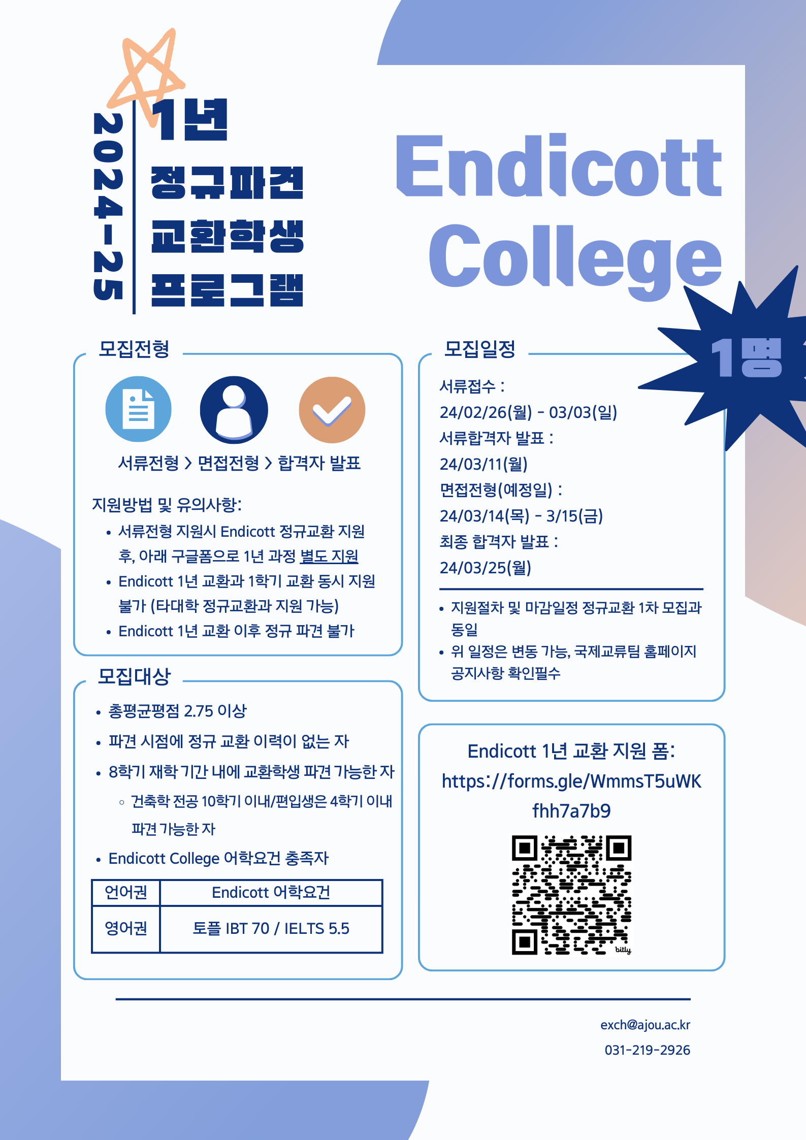 2024-2학기 정규교환 1년 프로그램 (UWM, Endicott College), 정규교환 1학기 IIT 모집 (~03.03)